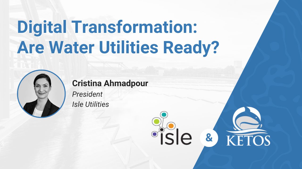 In a recent webinar themed “Emerging Technologies and Innovation in the Water Industry,” KETOS CEO and founder, Meena Sankaran, was joined by Cristina Ahmadpour, President of Isle Inc., to discuss how water utilities are meeting the moment with the rise of digital water solutions. Cristina leads a team supporting progressive water utilities to help them identify, evaluate, and engage with the best available solutions to help water utilities work smarter and was the perfect person to help dissect how prepared utilities are in terms of digital transformation – and what might be holding them back.