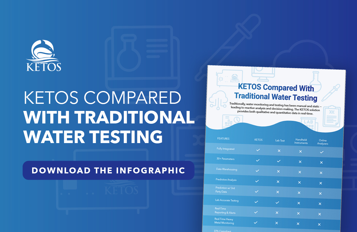 KETOS, a leading digital water technology, has revolutionized the water industry landscape with our award-winning water quality monitoring solution: the KETOS SHIELD. While many companies still rely on outdated forms of water quality monitoring, many more are moving towards more digital solutions. In our infographic, we break down why traditional lab testing, handheld instruments, and online analyzers can’t match the reliability and performance of KETOS SHIELD.