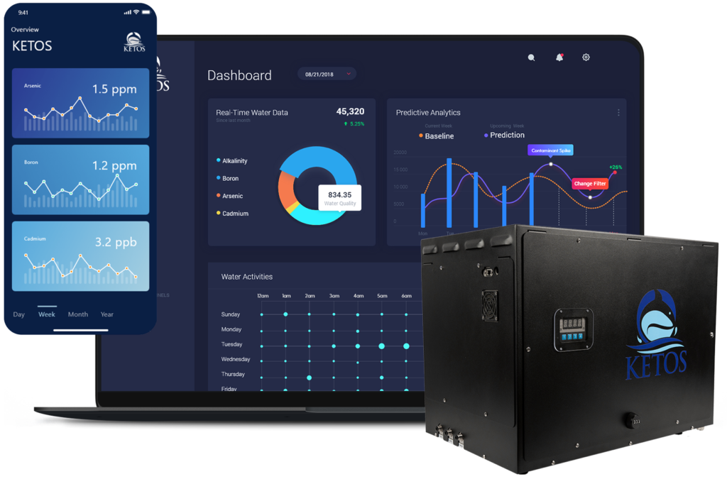 With KETOS, water operators can leverage machine learning and predictive insights to identify and solve for equipment/system failures, maintenance tasks, compliance issues, safety concerns, system performance, and consumer behavior.